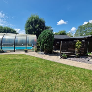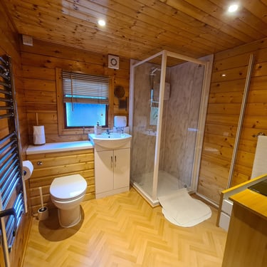 The main room has a double bed, wall mounted 2kw electric fire, 40 inch flat screen TV with built in DVD player, Fridge, kettle, toaster, cutlery, crockery and acrylic wine & champagne glasses for use in the Hot Tub.