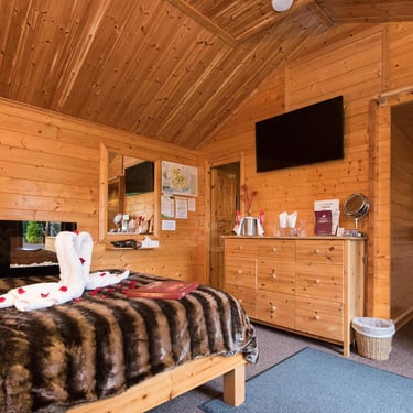 The Oak Log Cabin sleeps a maximum of two guests and has a 24hr Private, Covered Hot Tub outside the cabin door